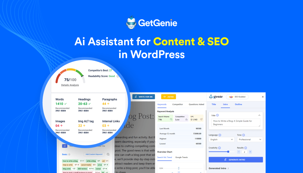 GetGenie AI is a software tool that combines AI powered writing, keyword research, and SEO analysis. It is available as a WordPress plugin and a separate web app, designed to streamline the content creation process.