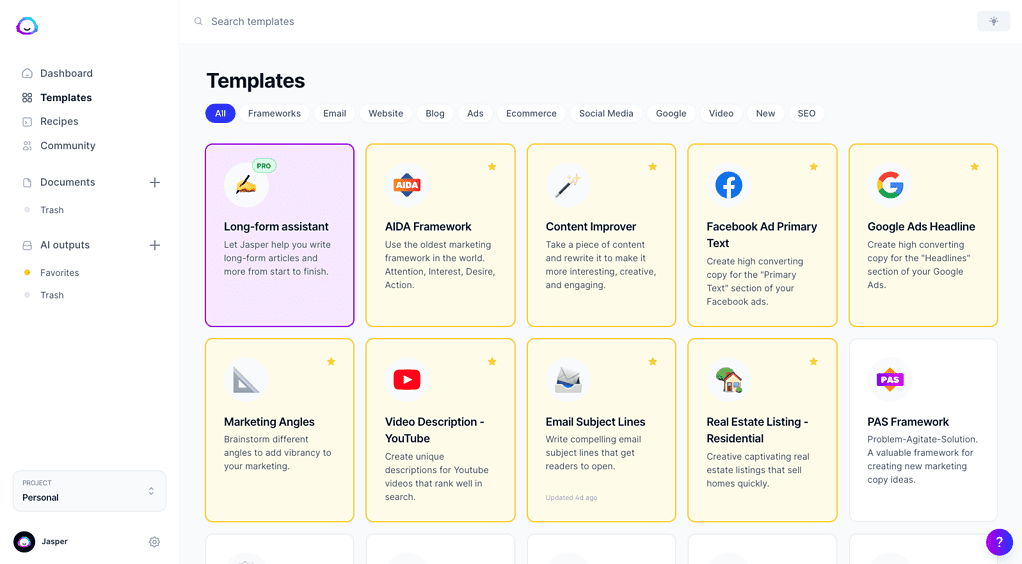 Jasper can produce SEO-friendly content like blog posts and meta descriptions. However, its dedicated “SEO Mode” requires an integration with Surfer SEO, which is a separate subscription. It is a helpful tool for SEO content creation but not an all-in-one SEO solution.