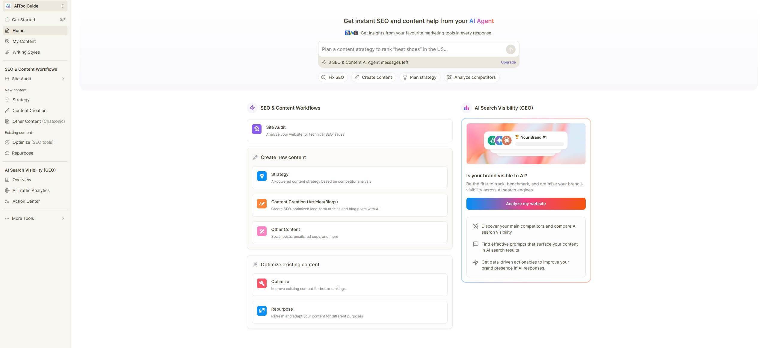 Getting started with Writesonic is simple, requiring no credit card for the free plan. From creating an account to generating a first useful paragraph took under five minutes. After sign up, a brief interactive tour highlights key features like the AI Article Writer and Chatsonic. The dashboard then prompts you to start your first project by selecting from the most popular templates, effectively guiding you toward immediate action. The clean, well-organized interface ensures you aren’t overwhelmed with options.