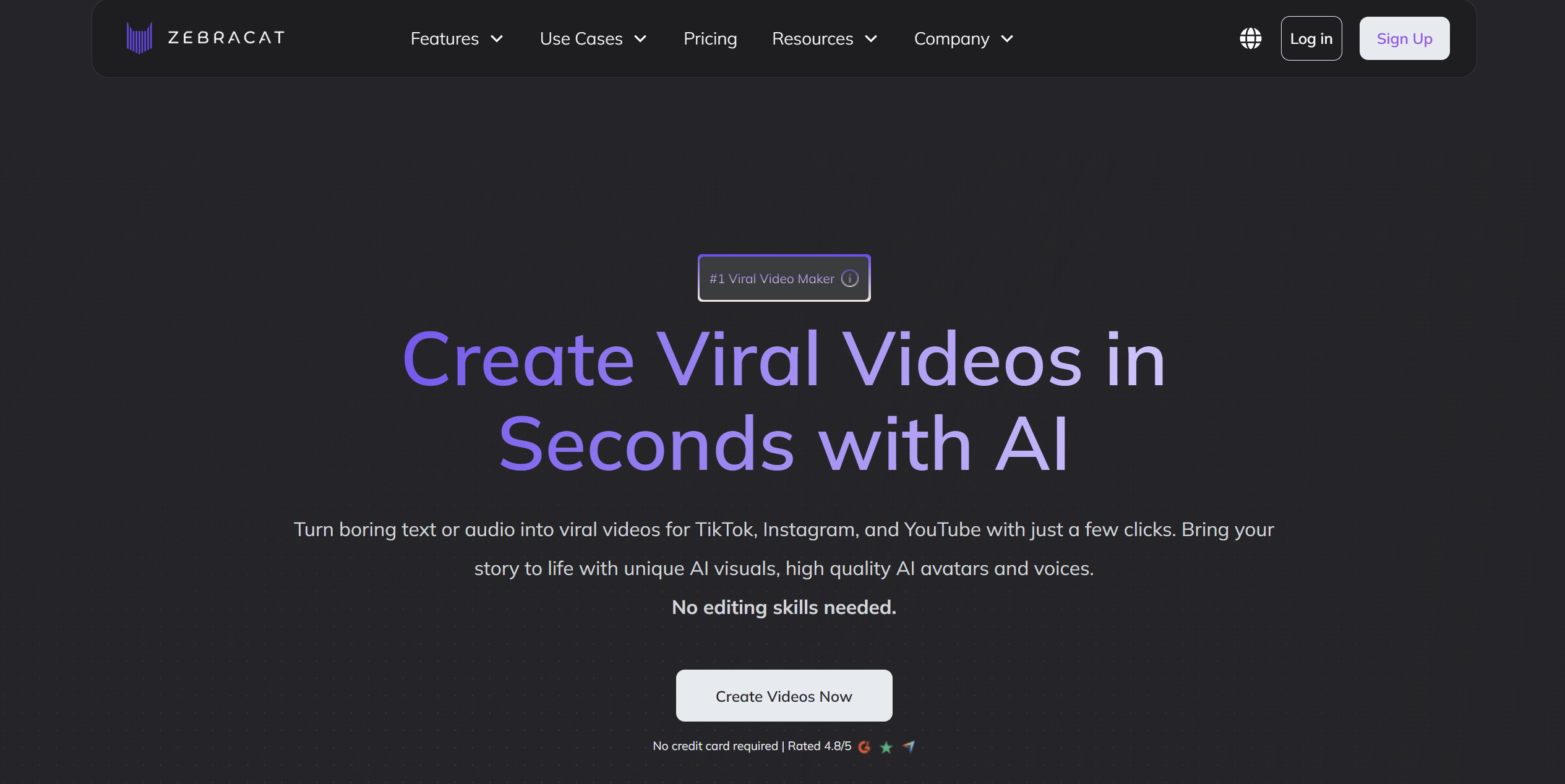 Zebracat is a fast, beginner-friendly AI video generator that turns scripts, URLs, or audio into short social-ready videos with minimal effort. It’s strongest for speed and “good-enough” automation (scenes, captions, voiceover). However, its value is clouded by a credit-based pricing model and a hard 5-minute per video cap